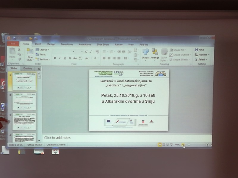 U petak, 25. listopada 2019.g. u 10 sati u prostoriji galerije Sikirica u Alkarskim dvorima održan je sastanak projektnog tima sa kandidatima/kinjama za program osposobljavanja za „zaštitare“ i „njegovateljice“. Sastanak se održao u okviru projekta „Lokalno partnerstvo za zapošljavanje Cetinske krajine“ Kodni broj UP.01.3.1.01.0026 kojeg sufinancira Europska unija iz Europskog socijalnog fonda, a kojeg provodi Centar za ruralni razvoj CERURA HR.